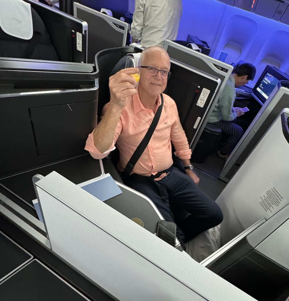 Surprisingly enough, having been denied access to fly due to an out of date passport last year, this time my paperwork was in order and in no time we had boarded our BA flight. I’m not a fan of BA but using airmiles to upgrade to Business did it for me, and I have to say the flight/ bed/food/service couldn’t have been better. Particularly as Patrick’s Chinese stewardess was extremely pretty and chatty . He spent the rest of the flight learning Mandarin. Loudly .So bravo BA